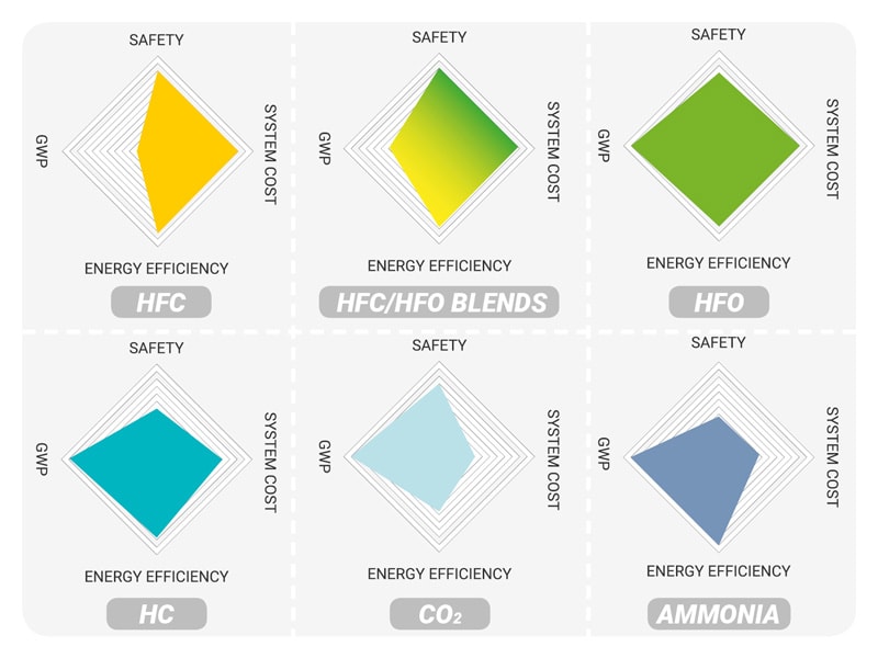 The new increasingly restrictive environmental provisions are marking the fate of HFCs and their gradual elimination. The future landscape will certainly be dominated by the HFOs; by HFC/HFO blends that exploit the advantages of both technologies to provide the best performance profile based on lower GWP, low flammability, efficiency and ease of use; finally, by a sort of return to origins with the increasingly widespread use of natural gas, thanks to advanced technological solutions and new safety standards.