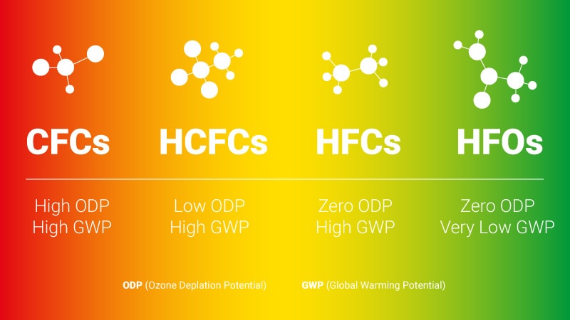 The environmental emergency led to a global agreement, known as the Montreal Protocol (1992), for the phasing out first of CFCs and later of HCFCs. After that, over the years, other agreements and regulations have followed, both internationally and nationally, with further restrictions on the use of gases with a high impact on the greenhouse effect. Hence, the adoption of the GWP (Global Warming Potential) index, a universally recognized parameter that allows you to identify whether the liquid is more or less sustainable from an environmental point of view. At the EU level, the 2030 target was also set to reduce the use of HFCs by 79% compared to 2010.