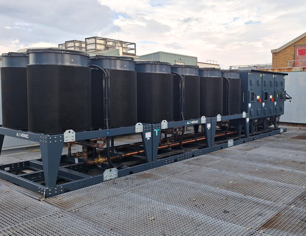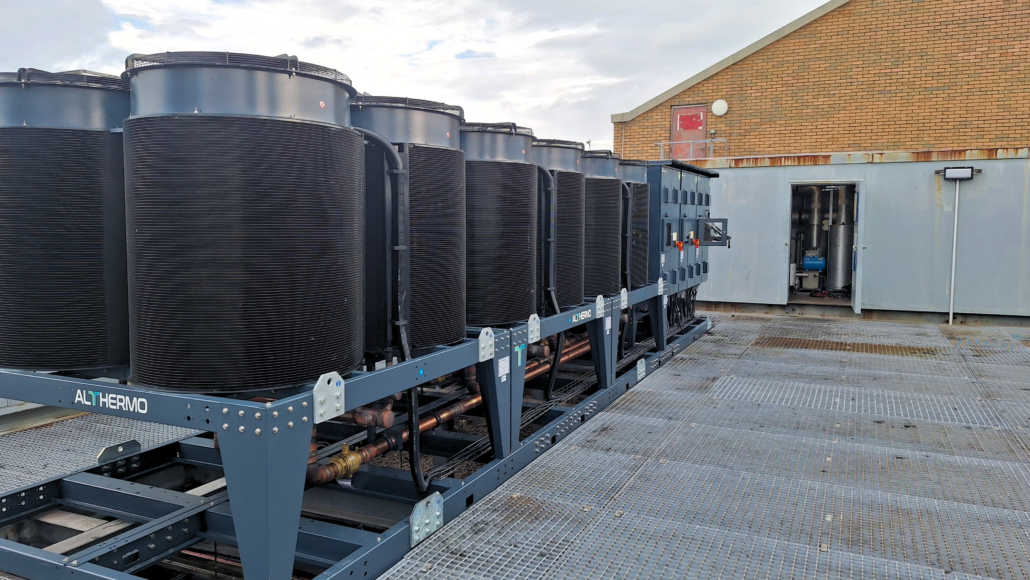 Das Geschäft in Glasgow musste die alte 1-MW-Schraubenkühlmaschine ersetzen, die seit fast 20 Jahren in Betrieb war. Das Projekt stellte jedoch eine einzigartige logistische Herausforderung dar: Das Gebiet um das Geschäft war seit der vorherigen Installation erheblich umgestaltet worden, so dass es unmöglich war, herkömmliche Kräne für den Austausch der alte Einheit auf dem Dach des Gebäudes einzusetzen. Aus diesem Grund wurde eine leichte, modulare und maßgeschneiderte Maschine erforderlich.
