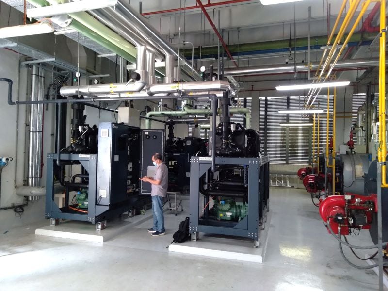 We were commissioned to design a heat pump system for the new plant in Singapore. The government of the Asian island, in fact, has imposed heavy taxes on the use of fossil fuels, especially diesel.