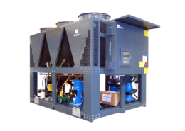 Verfügbar bei mehreren Typen die mit einem oder mehr Spiral- oder Kolbenverdichter ausgerüstet sind, dimensioniert zur Verwendung mit Kältemitteltype R410A oder mit den neuen niedrigem GWP HFO-1234ze oder mit R290. Diese luftgekühlten Flüssigkeitskühler mit Spiralverdichtern sind zusammengebaut in einem stabilen selbstragenden, geschraubten und geschweißten Rahmengestell, pulverbeschichtet mit Antikorrosionschutz gestrichen für Außenaufstellung. Alle Geräte werden komplett verdrahtet und anschlußfertig für den Einsatz der Betreiberanlage angeliefert. Vor Auslieferung wird jede Maschine einem Leistungstest unterzogen, mit Zwischenüberprüfungen aller Sicherheitssysteme und eingebauten Komponenten. Jedes Gerät steht in der Version mit leise laufenden Ventilatoren und schallgedämpftem Verdichtersatz für LN (leise Geräusche) und LLN (super leise Geräusche) zur Verfügung, für Aufstellgebiete bei denen Geräuschemissionen auf einen minimal niedrigen Stand gehalten werden müssen.