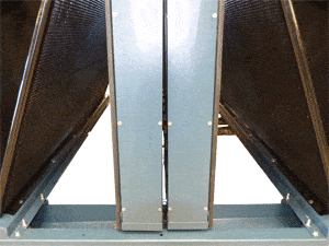 The new adiabatic evaporative system brings many advantages: firstly, it ensures a greater air flow towards the condenser coils, both on ON (closed pads) and OFF (opened pads) mode; then, it allows an easier access and maintenance; finally, it made it possible to eliminate a great amount of unnecessary material, in favour of more compact and more efficient structures.
