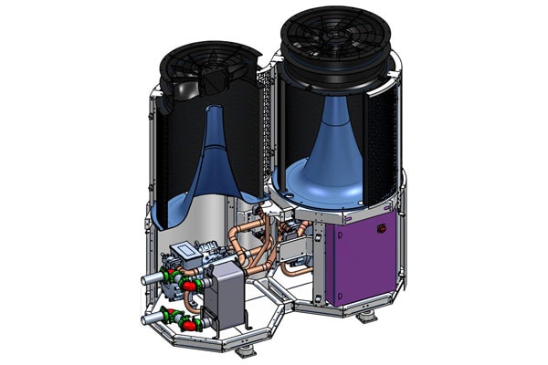 Circlemod cuenta con los condensadores cilíndricos de microcanal que la división de Investigación y Desarrollo de Geoclima ha desarrollado para la serie Circlemiser.