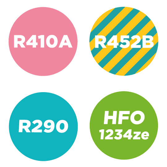 Circlemod está disponible con una amplia gama de refrigerantes. Los refrigerantes de bajo GWP, como el R290 y el HFO1234ze, están disponibles con compresores alternativos.