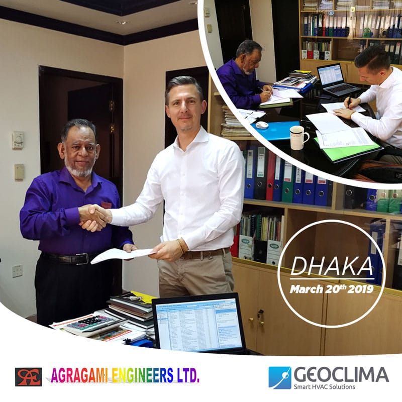 Geoclima is pleased to announce that on March 20th the exclusive distribution agreement for Bangladesh has been signed with Agragami Engineers Ltd.