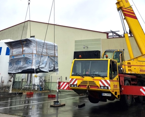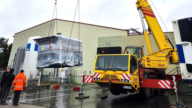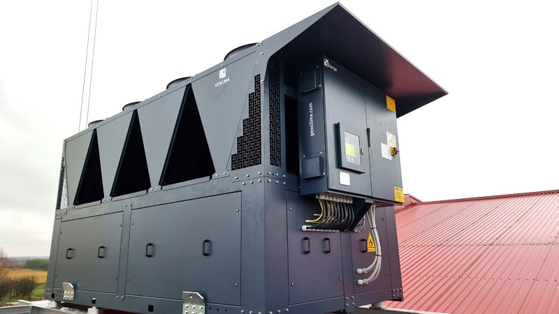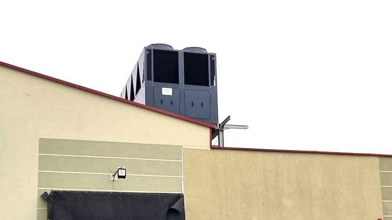 Together with our Polish partner Energycool, we have developed a 150 kW (42.6 RT) air-cooled unit with screw compressors and a 170 kW (48.3 RT) air-cooled chiller with reciprocating compressors. The chillers cool the propylene glycol down to -6 °C which will then be transported to the fan coils located in the production plant rooms.