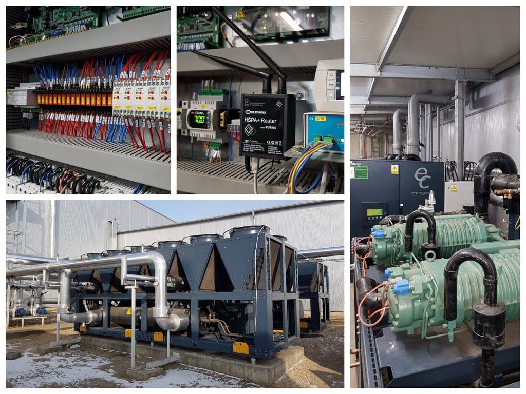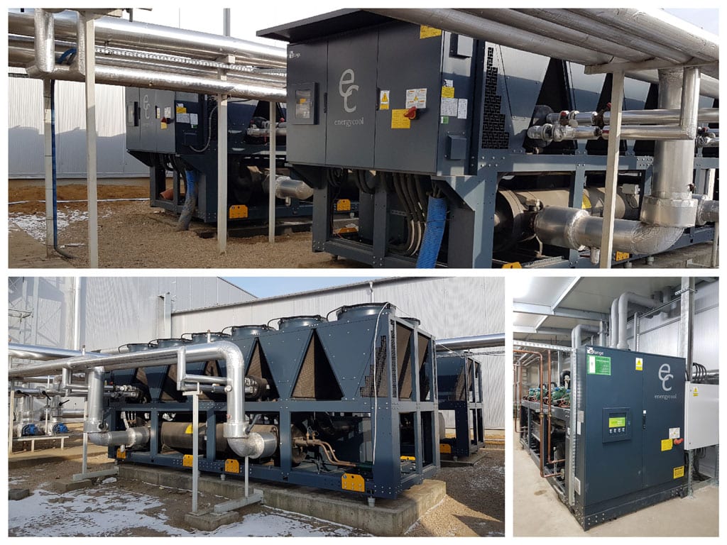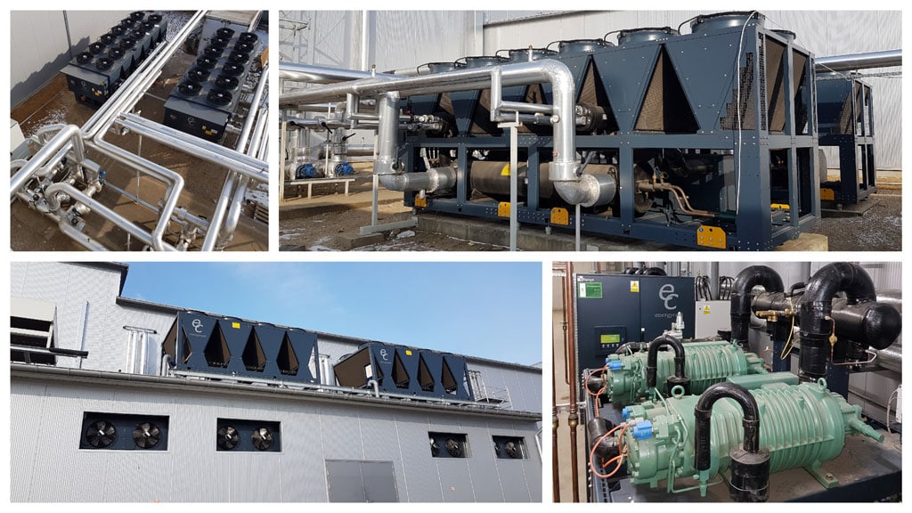 The project started with the design of the refrigeration system for the cold room, which required a temperature of -1,5 °C and for which Geoclima designed and manufactures two GHA air cooled units with screw compressors and heat recovery system for 650 kW of total cooling capacity: units will operate in parallel in a hydraulic system and will produce a glycol at -7°C (minus seven).