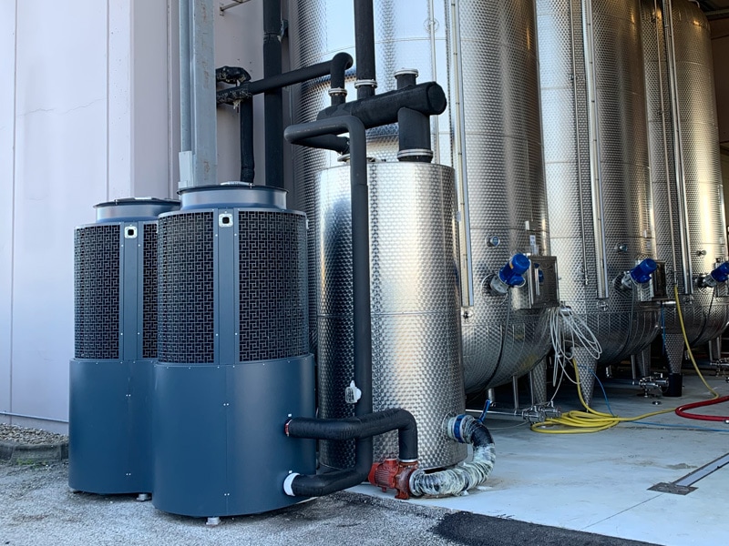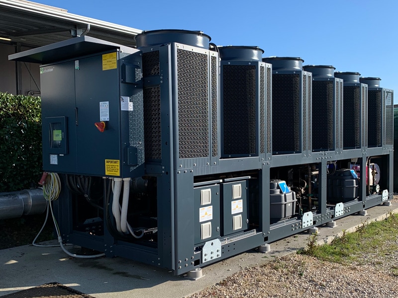 For the refrigeration in the bottling process of over 3000 hL of wine, we provided a 100 kW (28 RT) modular Circlemod air-cooled chiller, with semi-hermetic inverter compressors, exclusive circular condensers and R290 natural refrigerant (GWP = 3).