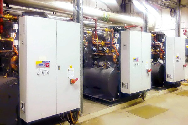 The project concerned three 910 kW Turbomiser TMH water cooled chillers, equipped with Danfoss Turbocor variable speed oil-free centrifugal compressors and total immersion evaporators.