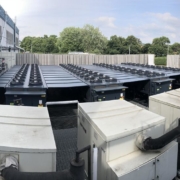 Turbomiser technology was selected by Colt to provide 5 MW of total cooling capacity, maximum efficiency and reliability to one of their major data center. The purpose of the project was the replacement of four inefficient and unreliable chillers. Air cooled heat rejection plant on this scale produces a lot of warm air, and even with the best possible plant layout air recirculation can be a real problem and effect performance massively across the year. To avoid this, we worked with Cooltherm to design a special “Cold-Isle” containment solution.